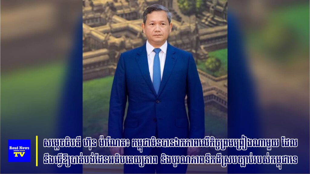 សម្តេចធិបតី ហ៊ុន ម៉ាណែត៖​ កម្ពុជាមិនបានឯកភាពលើកិច្ចព្រមព្រៀងណាមួយ ដែលនឹងធ្វើឱ្យបាត់បង់ដែនអធិបតេយ្យភាពនិងបូរណភាពទឹកដីស្របច្បាប់របស់កម្ពុជាទេ