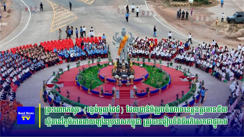 ព្រះលោកេស្វរៈ «រង្វង់មូលដៃ៨» ដែលជានិមិត្តរូបតំណាងខេត្តឧត្ដរមានជ័យ ស្ថិតនៅភូមិភាគពាយព្យនៃប្រទេសកម្ពុជា ត្រូវបានរៀបចំពិធីអភិសេកជាផ្លូវការ