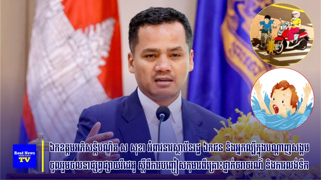 ឯកឧត្តមអភិសន្តិបណ្ឌិត ស សុខា អំពាវនាវស្ថាប័នរដ្ឋ ឯកជន និងអ្នកល្បីក្នុងបណ្ដាញសង្គម ចូលរួមចលនាផ្សព្វផ្សាយវីដេអូ ស្ដីពីការបញ្ចៀសកុមារពីគ្រោះថ្នាក់ចរាចរណ៍ និងការលង់ទឹក