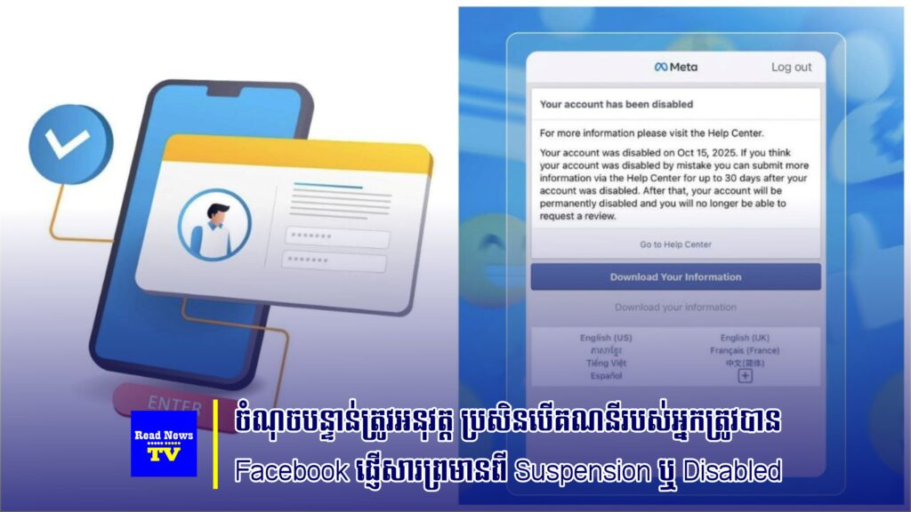 ដើម្បីការពារគណនី និងកាត់បន្ថយរយៈពេលដែលគណនីមិនអាចប្រើប្រាស់បាន។ ប្រសិនបើគណនីរបស់អ្នកត្រូវបាន Facebook ផ្ញើសារព្រមានពី Suspension ឬ Disabled ។ ខាងក្រោមនេះជាចំណុចបន្ទាន់ដែលអ្នកត្រូវធ្វើ៖ ទី១-Copying ID (ឬ IP ) Facebook ទុក ដេីម្បីមានសក្ខីកម្មថា បងប្អូនជាម្ចាស់កម្មសិទ្ធ Account Facebook ពិតប្រាកដ។ ទី២-ចូលទៅកាន់ Center Help Facebook៖ ចូលទៅកាន់ Facebook Help Center ហើយស្វែងរកផ្នែក “My Personal Account is Disabled”។ នេះជាជំហានដំបូងដើម្បីទទួលបានព័ត៌មានច្បាស់ពីមូលហេតុដែលគណនីរបស់អ្នកត្រូវបាន Disable និងអ្វីដែលអ្នកអាចធ្វើបាន ដើម្បីសង្រ្គោះគណនី។ ទី៣-បញ្ជាក់អត្តសញ្ញាណរបស់អ្នក៖ Facebook អាចស្នើឱ្យអ្នកបញ្ចូលព័ត៌មានដូចជា ឈ្មោះពិត និងអ៊ីមែលដែលអ្នកប្រើប្រាស់ និងរូបភាពអត្តសញ្ញាណផ្លូវការដូចជា ID, Passport, ឬ ប័ណ្ណសម្គាល់ផ្សេងៗ។ ការបញ្ជាក់អត្តសញ្ញាណនេះជួយ Facebook ផ្ទៀងផ្ទាត់ថា គណនីនេះជារបស់អ្នកពិត និងមិនមែនគណនីក្លែងក្លាយ។ ទី៤-បញ្ជូន Appeal Form៖ បន្ទាប់ពីបញ្ជាក់អត្តសញ្ញាណ អ្នកអាចបញ្ជូន Appeal Read more