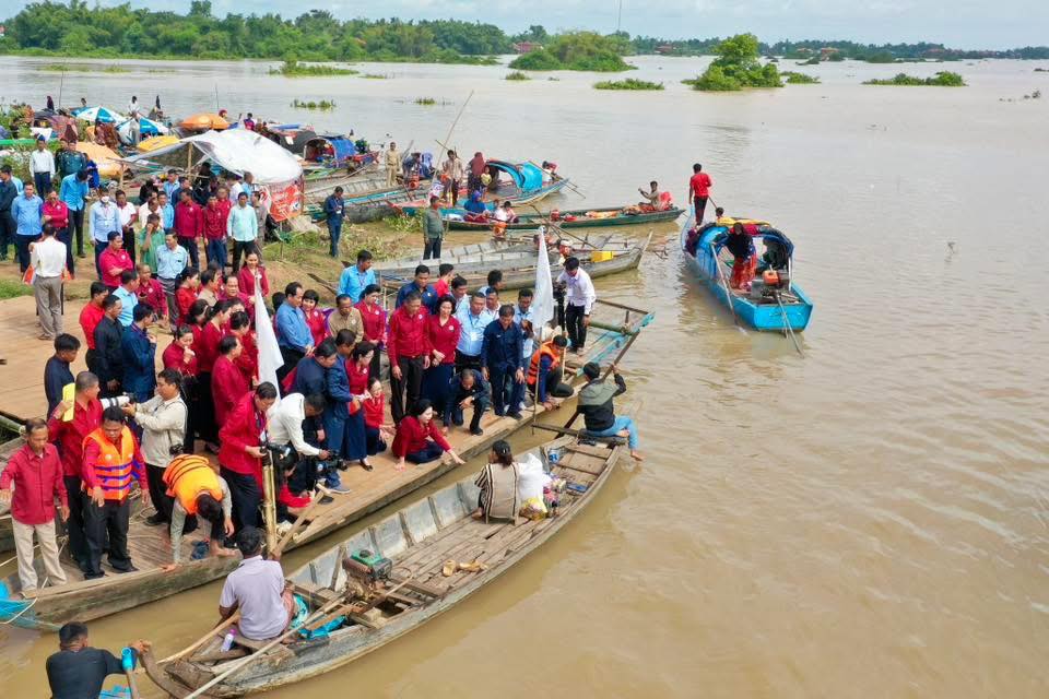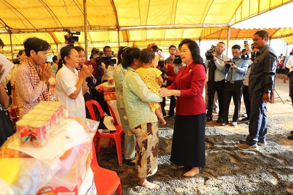 បន្ទាប់ពីបានទទួលព្រះរាជទ្រព្យដ៏ឧត្តុង្គឧត្តមចំនួន ២ម៉ឺនដុល្លារអាម៉េរិក របស់សម្តេចព្រះមហាក្សត្រី ព្រះវររាជមាតាជាតិខ្មែរ ព្រះប្រធានកិត្តិយសកាកបាទក្រហមកម្ពុជា ជាទីសក្ការៈដ៏ខ្ពង់ខ្ពស់បំផុត ភ្លាមៗនៅព្រឹកថ្ងៃអាទិត្យ ទី៥ ខែតុលា ឆ្នាំ២០២៥នេះ សម្តេចកិត្តិព្រឹទ្ធបណ្ឌិត ប៊ុន រ៉ានី ហ៊ុនសែន ប្រធានកាកបាទក្រហមកម្ពុជា បានចាត់ចែងព្រះរាជទ្រព្យដ៏ឧត្តុង្គឧត្តមនេះទិញស្បៀង និងសម្ភារ យកមកចែកជូនប្រជានុរាស្ត្រងាយរងគ្រោះបំផុត ដែលបានទទួលរងគ្រោះដោយទឹកជំនន់ចំនួន ១.៨០០គ្រួសារ មកពីភូមិចំនួន១៤ ក្នុងឃុំចំនួន៣ នៃស្រុកត្បូងឃ្មុំ ក្នុងនោះ ឃុំបឹងព្រួលចំនួន ២០០គ្រួសារ, ឃុំជីរោទិ៍ទី១ ចំនួន ៨២៨គ្រួសារ និងឃុំទន្លេបិទចំនួន ៧៧២គ្រួសារ ហើយដែលពិធីជួបសំណេះសំណាល និងចែកអំណោយនេះធ្វើឡើងនៅទីទួលសុវត្ថិភាពឧកញ៉ា វ័ន ប៊ុនថៃ ស្ថិតក្នុងភូមិទន្លេបិទលើ ឃុំទន្លេបិទ ស្រុកត្បូងឃ្មុំ ខេត្តត្បូងឃ្មុំ។