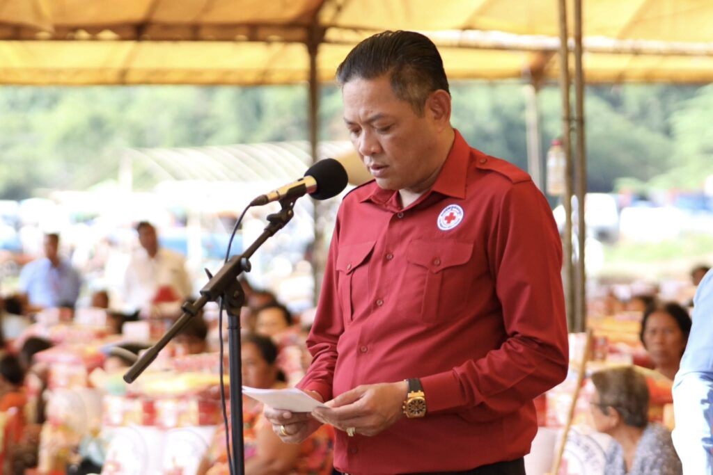 ក្នុងឱកាសនោះ សម្តេចកិត្តិព្រឹទ្ធបណ្ឌិត បាននាំនូវព្រះរាជបន្ទូលនិងព្រះសវណីយ៍ផ្តាំផ្ញើសួរសុខទុក្ខ ប្រកបដោយព្រះរាជហឫទ័យក្តីនឹករលឹក និងសេចក្តីស្រឡាញ់ដ៏ជ្រាលជ្រៅ ពីព្រះករុណា ព្រះមហាក្សត្រ ជាអម្ចាស់ជីវិតលើត្បូង និងសម្តេចព្រះមហាក្សត្រី ព្រះវររាជមាតាជាតិខ្មែរ ព្រះប្រធានកិត្តិយសកាកបាទក្រហមកម្ពុជា ជាទីគោរពសក្ការៈដ៏ខ្ពង់ខ្ពស់បំផុត ដែលជានិច្ចកាល ព្រះអង្គទាំងទ្វេតែងតែគិតគូរពីសុខទុក្ខប្រជានុរាស្ត្ររបស់ព្រះអង្គគ្រប់ពេលវេលា និងនៅគ្រប់ទីកន្លែង។ ជាក់ស្ដែង កាលពីថ្ងៃទី៣ ខែតុលា ឆ្នាំ២០២៥កន្លងទៅនេះ សម្តេចព្រះវររាជមាតាជាតិខ្មែរ បានសព្វព្រះរាជហឫទ័យ ប្រោសព្រះរាជទាននូវព្រះរាជទ្រព្យចំនួន ២ម៉ឺនដុល្លារអាម៉េរិក សម្រាប់យកមកចែកជូនប្រជាពលរដ្ឋដែលរងផលប៉ះពាល់ដោយទឹកជំនន់នៅក្នុងស្រុកត្បូងឃ្មុំ ខេត្តត្បូងឃ្មុំរបស់យើងនេះ។
