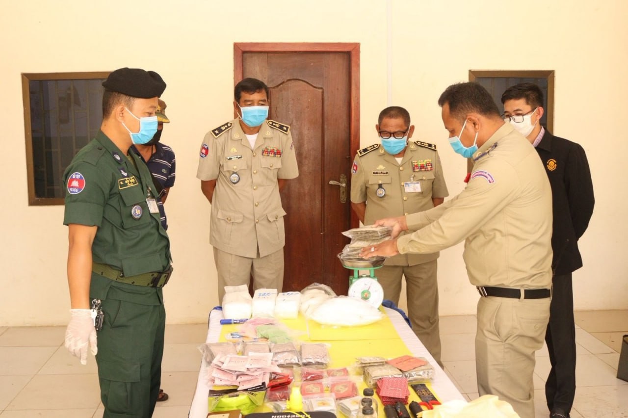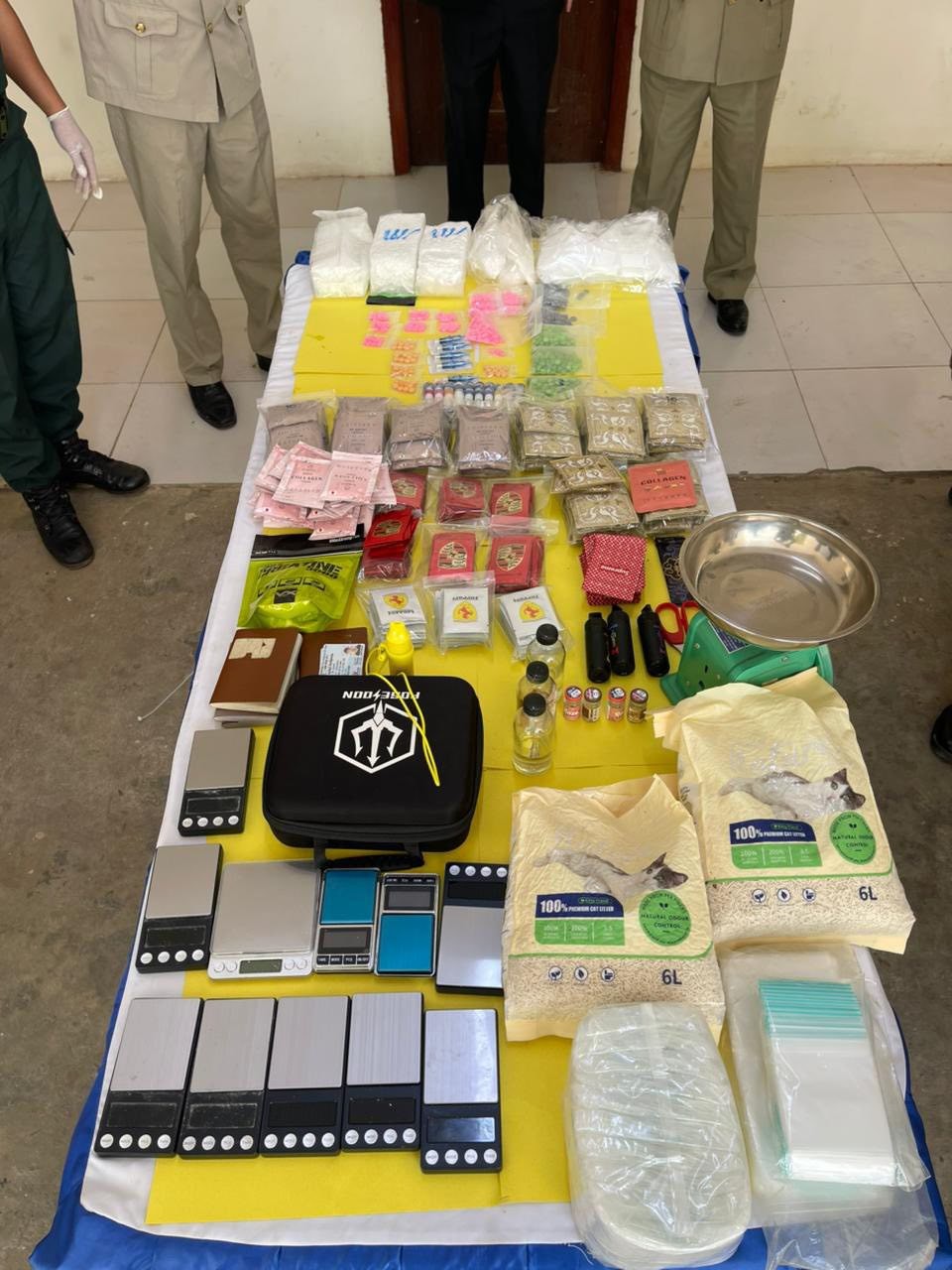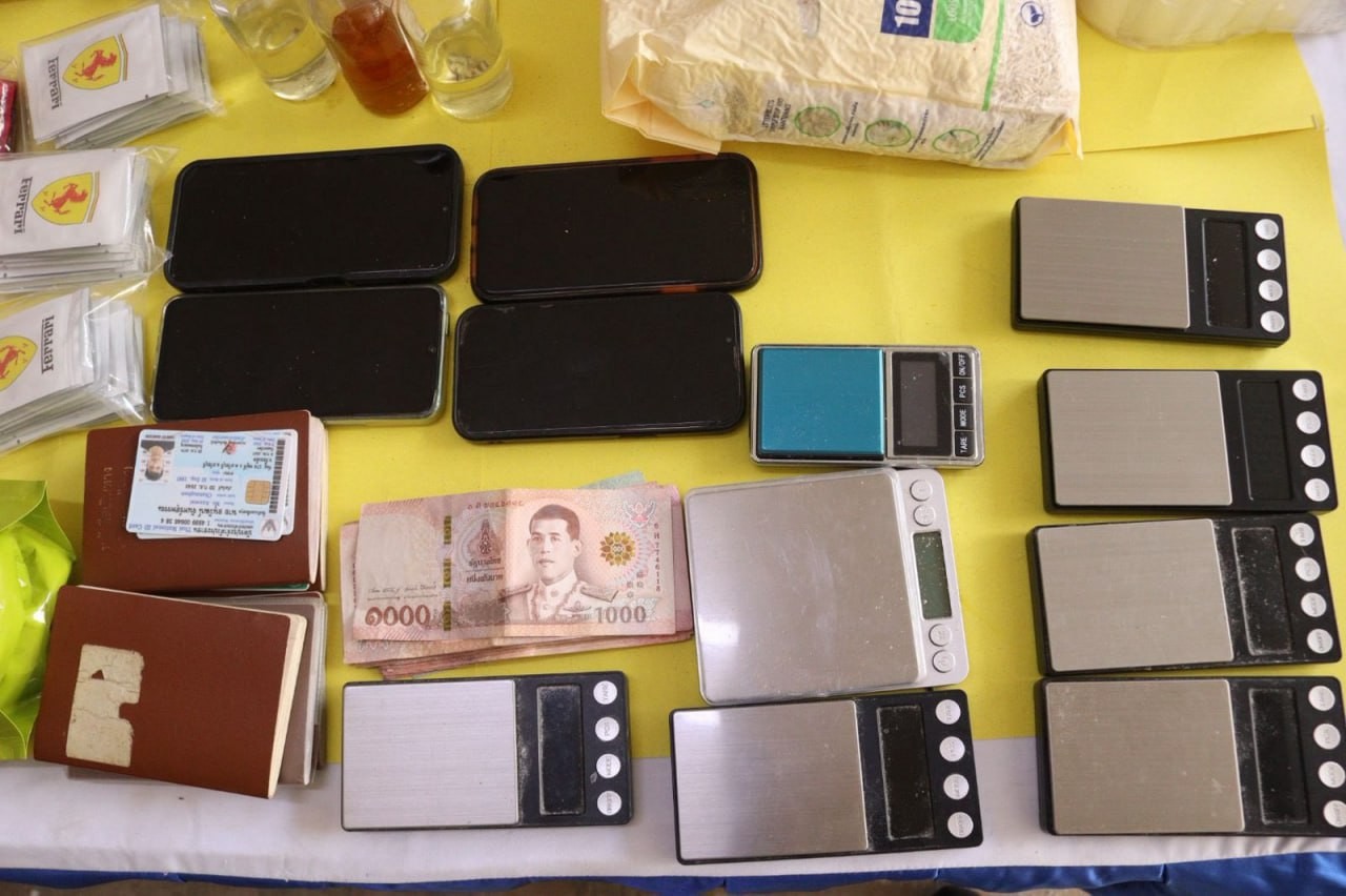 ក្នុងប្រតិបត្តិការ សមត្ថកិច្ច បានដកហូតសម្ភារ និងវត្ថុតាងរួមមាន៖ ១-ម្សៅក្រាមកេតាមីន (K) (សង្ស័យជាសារធាតុញៀន) ចំនួន ១១៥កញ្ចប់ ធំ០៤កញ្ចប់, ២-ថ្នាំគ្រាប់ពណ៌ប្រផេះ (សង្ស័យជាសារធាតុញៀន) ចំនួន ២កញ្ចប់ធំ ស្មើនិង២០០គ្រាប់, ៣-ថ្នាំគ្រាប់ពណ៌បៃតង (សង្ស័យជាសារធាតុញៀន) ចំនួន ០៣កញ្ចប់ធំស្មើនិង ៣០០គ្រាប់, ៤-ម្សៅគ្រាប់ពណ៌ផ្កាឈូក(សង្ស័យជាសារធាតុញៀន)ចំនួន ០២កញ្ចប់ធំ ស្មើនិង២៧៣គ្រាប់, ៥-កញ្ចប់ពណ៌ក្រហមរូបសេះសង្ស័យជាសារធាតុញៀន) ចំនួន០៤, ៦-កញ្ចប់ពណ៌លឿង(សង្ស័យជាសារធាតុញៀន)ចំនួន ០២កញ្ចប់, ៧-ខលីចេនចំនួន៨កញ្ចប់ (សង្ស័យជាសារធាតុញៀន), ៨-កញ្ចប់ពណ៌ខ្មៅចំនួន០១(សង្ស័យជាសារធាតុញៀន)។ ៩-ជញ្ជីងចំនួន១១គ្រឿង, ១០-ទូរស័ព្ទចំនួន ០៤គ្រឿង, ១១-លុយថៃចំនួន ១២១៤០បាត, ១២-ថង់សម្រាប់វេចខ្ចប់មួយចំនួន, ១៣-ម៉ូតូចំនួន ០៣គ្រឿង-ម៉ាកPCXស្លាកលេខភ្នំពេញ 1FN-1014 -ម៉ាកPCXស្លាកលេខភ្នំពេញ 1GK-3259 -ម៉ាកស្កុបពីស្លាកលេខភ្នំពេញ 1AS 2676 និង១៤-ម៉ាស៊ីនរាប់លុយចំនួន០១គ្រឿង។