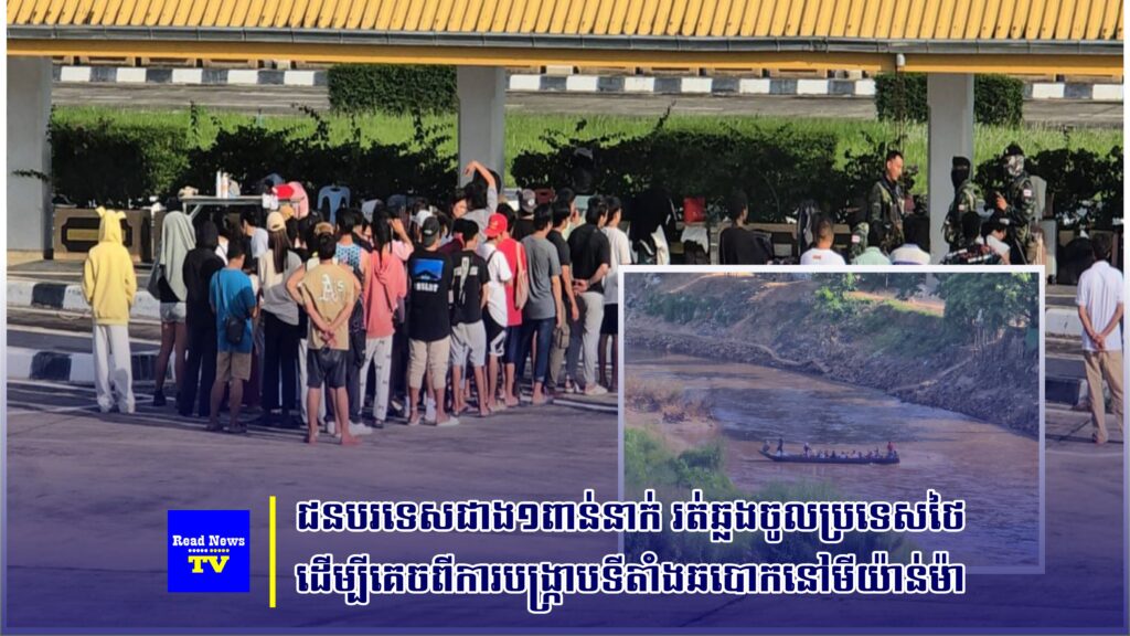 មីយ៉ាន់ម៉ា-ថៃឡង់ដ៍៖ ជនបរទេសជាងមួយពាន់នាក់ ដែលសង្ស័យថាជាអ្នកធ្វើការនៅក្នុងមជ្ឈមណ្ឌលឆបោក បានរត់គេចខ្លួនឆ្លងកាត់ចេញពីព្រំដែនក្នុងទីក្រុងម្យាវ៉ាត់ឌី (Myawaddy) រដ្ឋការ៉ែន (Karen) ប្រទេសមីយ៉ាន់ម៉ា ចូលទៅកាន់ប្រទេសថៃ បន្ទាប់ពីប្រឈមនូវប្រតិបត្តិការបង្ក្រាបឧទ្យាន KK (KK Park) កាលពីថ្ងៃចន្ទ ។