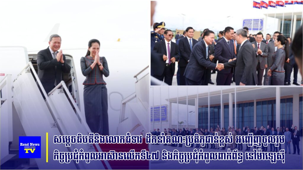 សម្តេចមហាបវរធិបតី ហ៊ុន ម៉ាណែត នាយករដ្ឋមន្ត្រីនៃព្រះរាជាណាចក្រណាចក្រកម្ពុជា នៅរសៀលថ្ងៃទី២៥ ខែតុលា ឆ្នាំ២០២៥នេះ បានដឹកនាំគណៈប្រតិភូជាន់ខ្ពស់អញ្ជើញចូលរួមកិច្ចប្រជុំកំពូលអាស៊ានលើកទី៤៧ និងកិច្ចប្រជុំកំពូលពាក់ព័ន្ធ ដែលប្រព្រឹត្តទៅនៅថ្ងៃទី២៥-២៨ ខែតុលា ឆ្នាំ២០២៥ នៅទីក្រុងគូឡាឡាំពួ ប្រទេសម៉ាឡេស៊ី តបតាមការអញ្ជើញរបស់ ឯកឧត្តម ដាតុ ស៊េរី អាន់វ៉ា អ៊ីប្រាហ៊ីម នាយករដ្ឋមន្ត្រីនៃប្រទេស ម៉ាឡេស៊ី និងជាប្រធាននៃកិច្ចប្រជុំកំពូលអាស៊ានឆ្នាំ២០២៥។