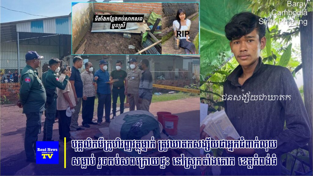 ស្ដ្រីម្នាក់ ត្រូវបានឃាតកសង្ស័យជាអ្នកជំពាក់លុយសម្លាប់ រួចយកសពទៅកប់ក្រោយផ្ទះ ស្ថិតក្នុងភូមិក្រូច ឃុំស្វាយភ្លើង ស្រុកតាំងគោក ខេត្តកំពង់ធំ និងបង្កឲ្យមានការភ្ញាក់ផ្អើលនៅថ្ងៃទី១៤ ខែវិច្ឆិកា ឆ្នាំ២០២៥ ។