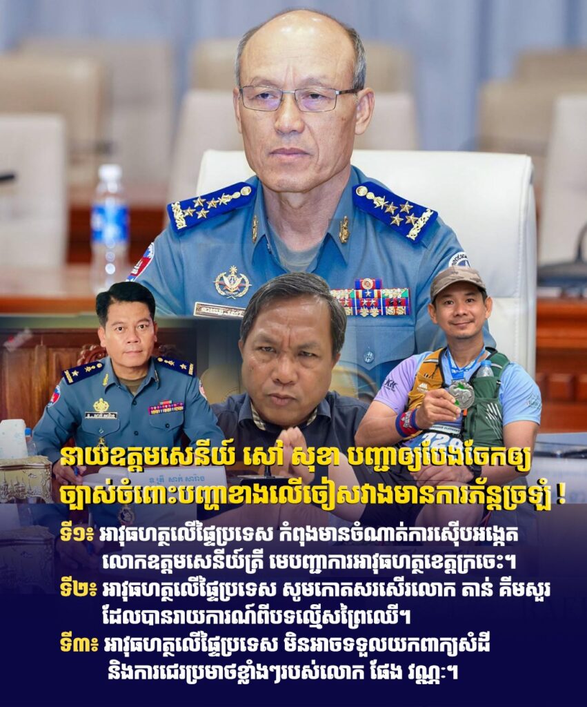 ទី១៖ អាវុធហត្ថលើផ្ទៃប្រទេស កំពុងមានចំណាត់ការស៊ើបអង្កេតមេបញ្ជាការអាវុធហត្ថខេត្តក្រចេះ។