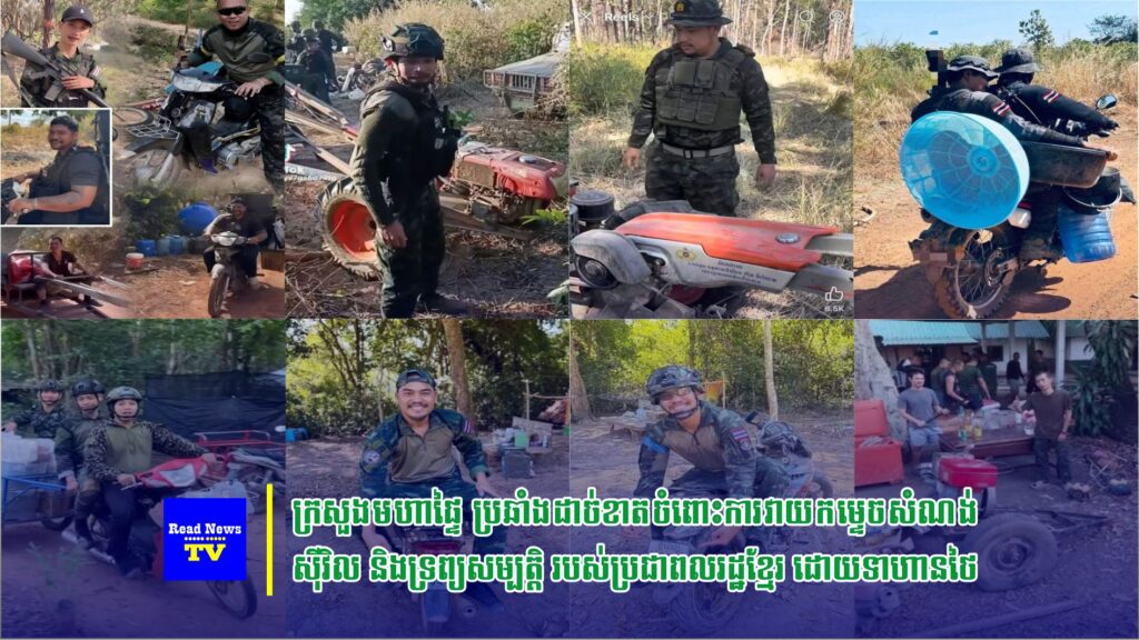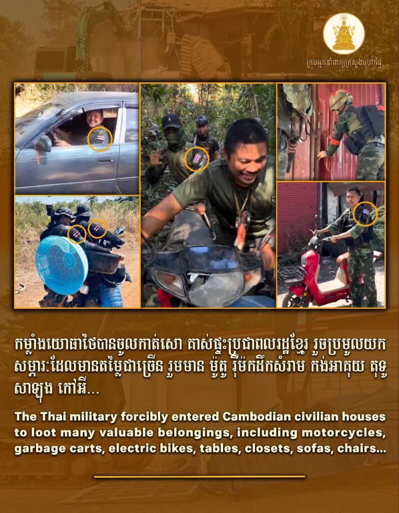 រូបភាព៖ កម្លាំងយោធាថៃបានចូលកាត់សោ គាស់ផ្ទះ រួចប្រមូលយកសម្ភារៈដែលមានតម្លៃជាច្រើន រួមមាន ម៉ូតូ រ៉ឺម៉ក កង់អាគុយ តុទូ សាឡុង កៅអី… និងទ្រព្យសម្បត្តិជាច្រើន របស់ប្រជាពលរដ្ឋខ្មែរ ក្នុងទីតាំងដែលខ្លួនឈ្លានពាន ក្រោយបទឈប់បាញ់ ។