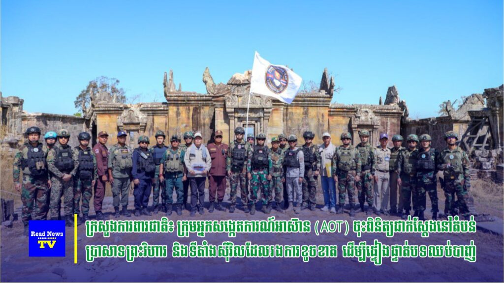 គិតចាប់តាំងពីការចូលជាធរមាននៃបទឈប់បាញ់រវាងកម្ពុជា និងថៃ កាលពីចុងខែធ្នូ ឆ្នាំ២០២៥ មកទល់នឹងថ្ងៃទី១៣ ខែមករា ឆ្នាំ២០២៦ នេះ ក្រុមអ្នកសង្កេតការណ៍អាស៊ាន (AOT) ដោយមានការសម្របសម្រួលពីភាគីកម្ពុជា បានចុះពិនិត្យ ផ្ទៀងផ្ទាត់ និងរាយការណ៍អំពីស្ថានការណ៍ជាក់ស្តែងនៅតាមតំបន់ព្រំដែនសំខាន់ៗ រាប់បញ្ចូលទាំងតំបន់ប្រាសាទព្រះវិហារ និងហេដ្ឋារចនាសម្ព័ន្ធស៊ីវិលដែលរងការខូចខាត។ នេះបើតាមការបញ្ជាក់របស់ លោកជំទាវ ឧត្តមសេនីយ៍ឯក ម៉ាលី សុជាតា អ្នកនាំពាក្យក្រសួងការពារជាតិ នៅថ្ងៃទី១៣ ខែមករា ឆ្នាំ២០២៦ នេះ។