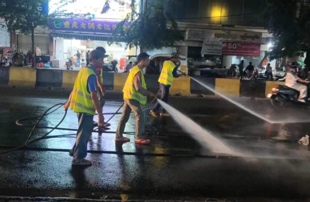 ជាមួយគ្នានេះ លោកស្រី ដោ សម្ផស្ស នាយិការង និងជាអ្នកនាំពាក្យរដ្ឋបាលរាជធានីភ្នំពេញ បានមានប្រសាសន៍ថា រដ្ឋបាលរាជធានីភ្នំពេញ កំពុងអនុវត្តការលាងសម្អាតអនាម័យនៅតាមមហាវិថីម៉ៅសេទុង មហាវិថីព្រះមុនីរ៉េត ផ្លូវលេខ២៣០ និងតំបន់ជុំវិញ ដើម្បីត្រៀមរៀបចំជួសជុល និងកែលម្អហេដ្ឋារចនាសម្ព័ន្ធ។