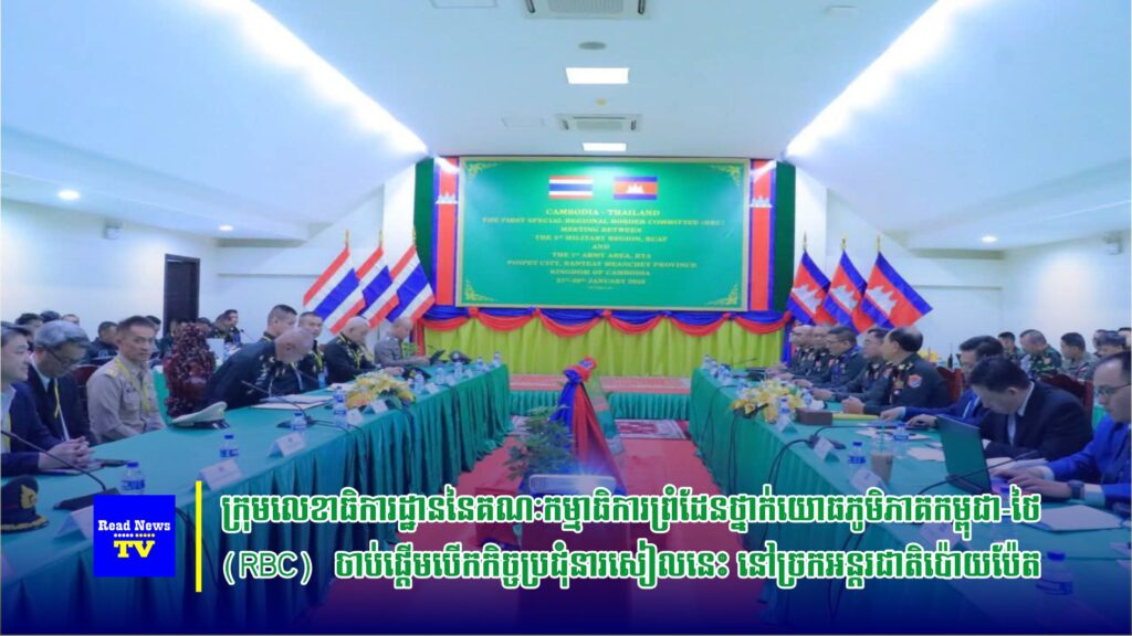 នៅរសៀលថ្ងៃទី២៧ ខែមករា ឆ្នាំ២០២៦នេះ កិច្ចប្រជុំក្រុមលេខាធិការដ្ឋាននៃគណៈកម្មាធិការព្រំដែនថ្នាក់យោធភូមិភាគកម្ពុជា-ថៃ (RBC) យោធភូមិភាគទី៥ ភាគីកម្ពុជា និងកងទ័ពភូមិភាគទី១ ភាគីថៃ បានចាប់ផ្តើមកិច្ចប្រជុំរបស់ខ្លួនហើយ នាវេលាម៉ោង ១៤:០០នាទី នៅច្រកអន្តរជាតិប៉ោយប៉ែត ខេត្តបន្ទាយមានជ័យ ព្រះរាជាណាចក្រកម្ពុជា ទល់នឹងខេត្តស្រះកែវ ព្រះរាជាណាចក្រថៃ។