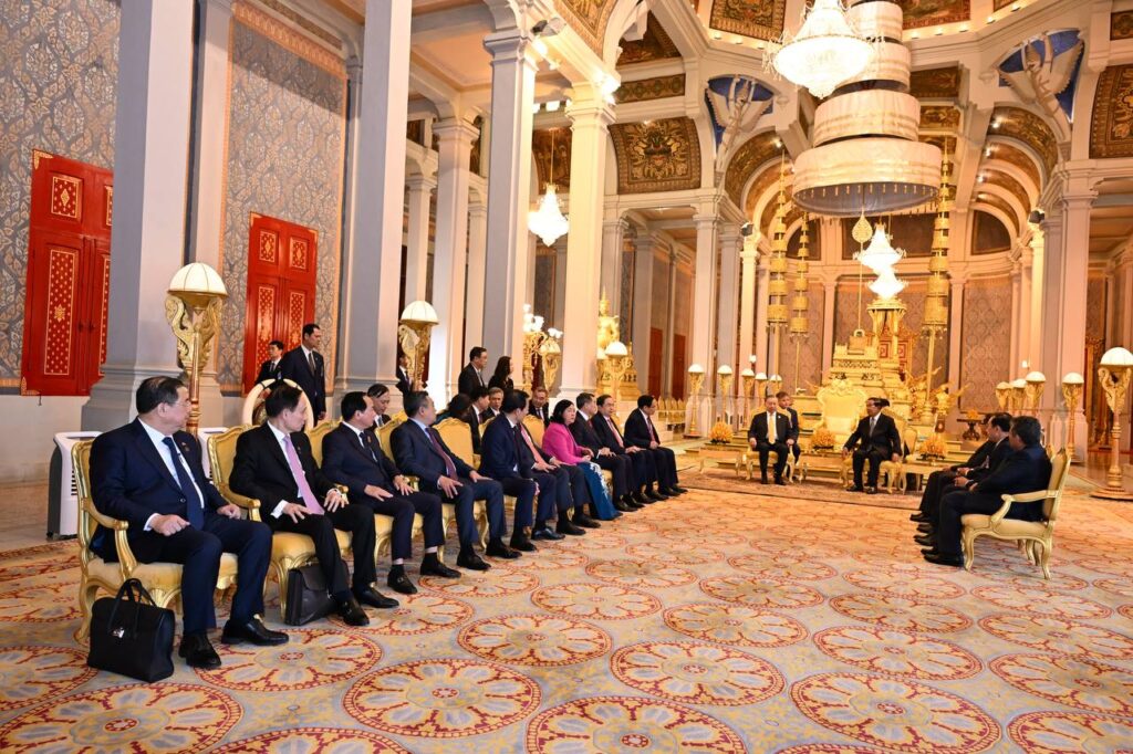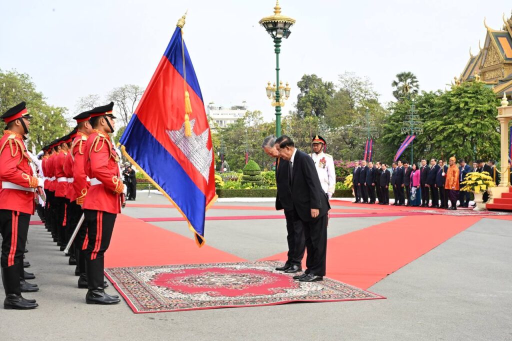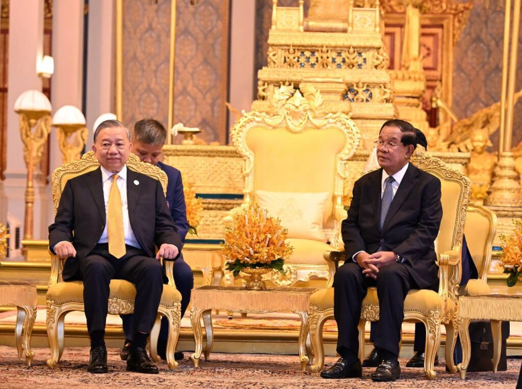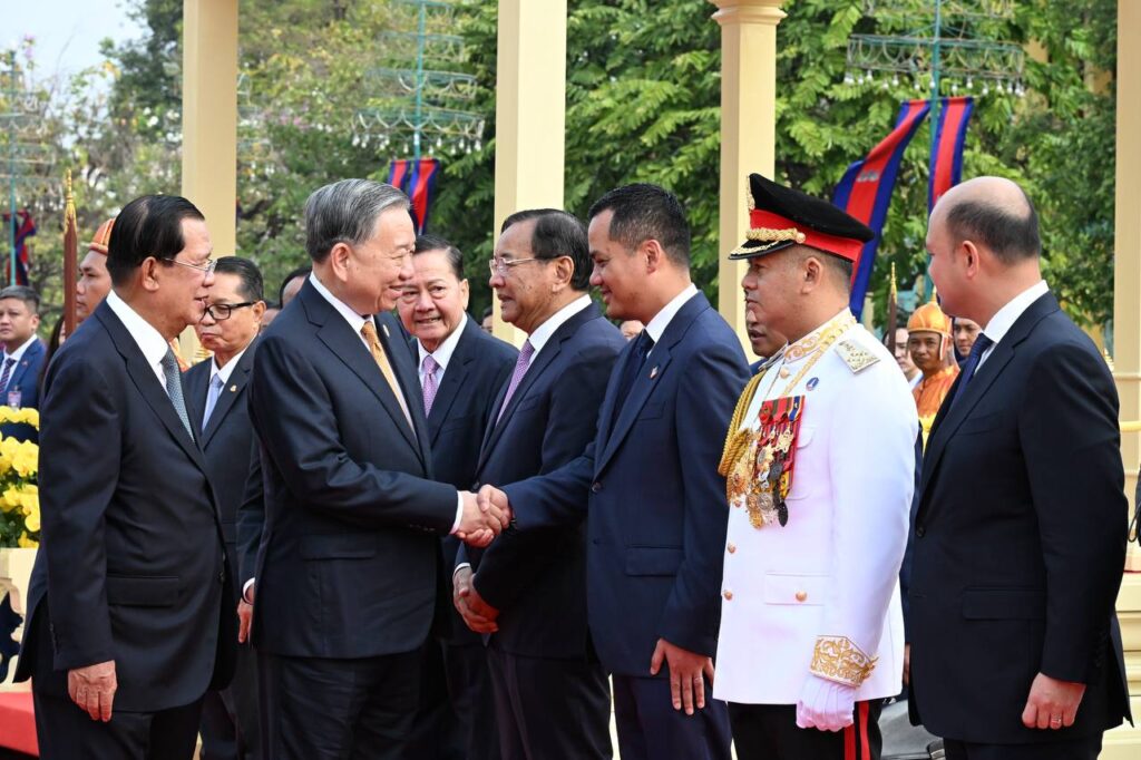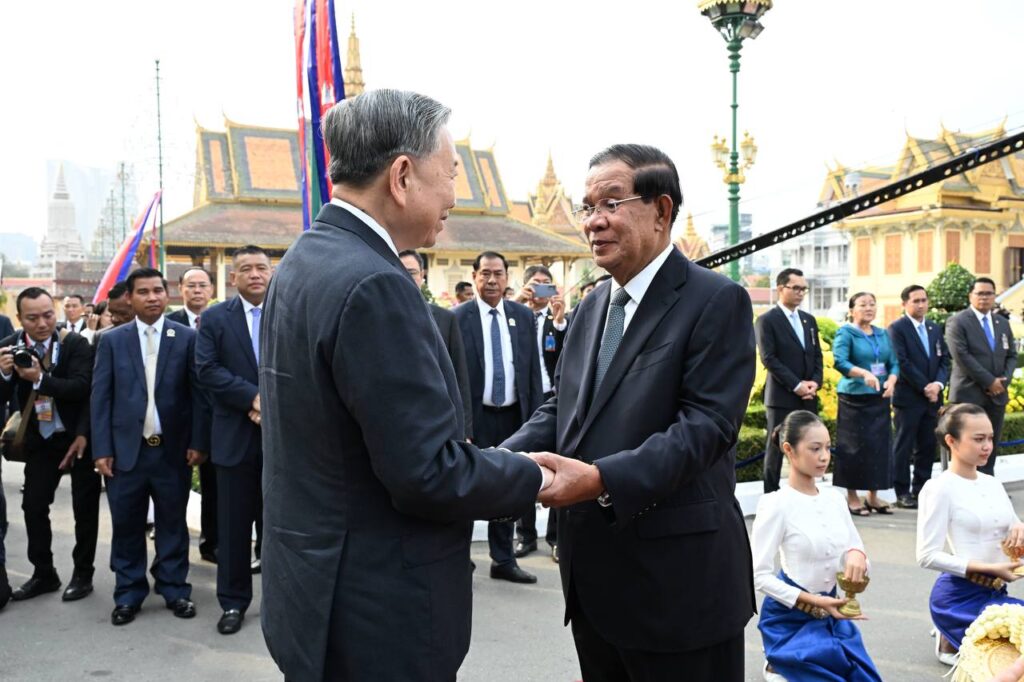 នៅព្រះបរមរាជវាំង នាព្រឹកថ្ងៃសុក្រ ៤រោច ខែមាឃ ឆ្នាំម្សាញ់ សប្តស័ក ពុទ្ធសករាជ ២៥៦៩ ត្រូវនឹងថ្ងៃទី៦ ខែកុម្ភៈ ឆ្នាំ២០២៦នេះ សម្ដេចអគ្គមហាសេនាបតីតេជោ ហ៊ុន សែន ប្រធានព្រឹទ្ធសភានៃព្រះរាជាណាចក្រកម្ពុជា បានអញ្ជើញជាព្រះរាជតំណាងដ៏ខ្ពង់ខ្ពស់បំផុត របស់ព្រះករុណាព្រះបាទសម្ដេចព្រះបរមនាថ នរោត្តម សីហមុនី ព្រះមហាក្សត្រនៃព្រះរាជាណាចក្រកម្ពុជា ទទួលបដិសណ្ឋារកិច្ចស្វាគមន៍ផ្លូវរដ្ឋជូន ឯកឧត្តម តូ ឡឹម អគ្គលេខាធិការបក្សកុម្មុយនីស្តវៀតណាម ជាមួយនឹងជំនួបសាវនាកាផងដែរ ក្នុងឱកាសដែល ឯកឧត្តម អញ្ជើញបំពេញទស្សនកិច្ចផ្លូវរដ្ឋនៅកម្ពុជា។