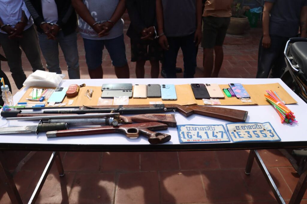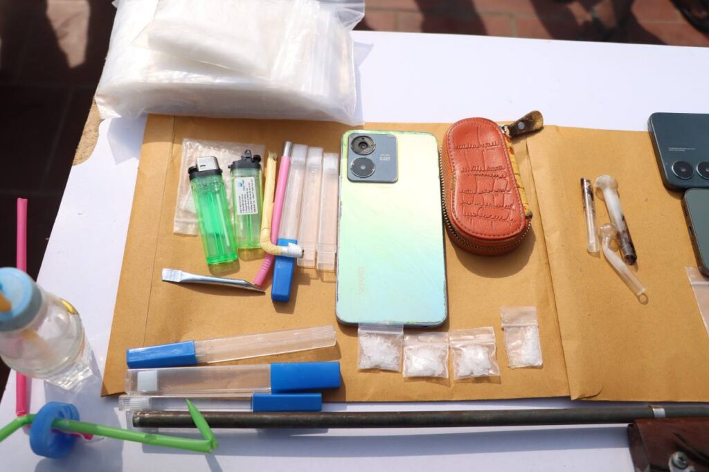 ជាមួយគ្នានេះ សមត្ថកិច្ចបានដកហូតវត្ថុតាងរួមមាន គ្រឿងញៀនប្រភេទម្សៅក្រាមពណ៌សថ្លា (ICE) ចំនួន ១២កូនថង់ ទម្ងន់ ២០,៧៤ក្រាម, គ្រឿងញៀនប្រភេទថ្នាំគ្រាប់ (WY) ចំនួន ០៦គ្រាប់ ទម្ងន់ ១ក្រាម, ម៉ូតូ ០៦គ្រឿង, ទូរស័ព្ទ ០៩គ្រឿង, ផ្លាកលេខម៉ូតូ ០២សន្លឹក, កាំភ្លើងស្នប់កែច្នៃ ០៣ដើម, កាំបិតស្នៀត ០១ដើម និងសម្ភារៈសម្រាប់ប្រើប្រាស់គ្រឿងញៀនមួយចំនួនទៀត។