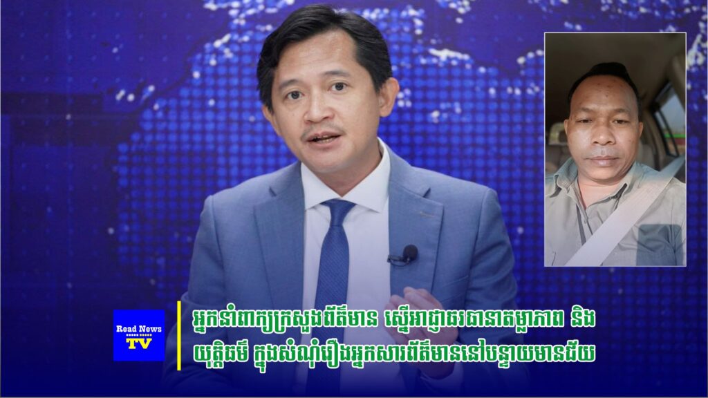 អ្នកនាំពាក្យក្រសួងព័ត៌មាន បានស្នើអាជ្ញាធរពាក់ព័ន្ធឱ្យផ្តល់អាទិភាពលើការធានា តម្លាភាព និងយុត្តិធម៌ ស្របតាមច្បាប់ ក្នុងសំណុំរឿងពាក់ព័ន្ធនឹងអ្នកសារព័ត៌មានមួយនៅខេត្តបន្ទាយមានជ័យ ខណៈក្រសួងព័ត៌មានកំពុងតាមដានករណីនេះយ៉ាងជិតស្និទ្ធ។