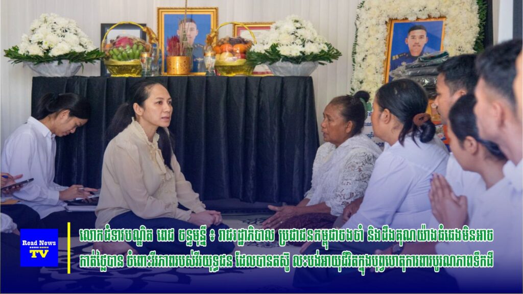 លោកជំទាវបណ្ឌិត ពេជ ចន្ទមុន្នី ហ៊ុនម៉ាណែត មានប្រសាសន៍ថា រាជរដ្ឋាភិបាល ប្រជាជនកម្ពុជា គឺបានចងចាំ និងដឹងគុណយ៉ាងធំធេងមិនអាចកាត់ថ្លៃបាន ចំពោះវីរភាពរបស់វីរយុទ្ធជនយ ដែលបានតស៊ូ លះបង់អាយុជីវិតក្នុងបុព្វហេតុការពារបូរណភាពទឹកដី ហើយបានសរបញ្ជាក់ច្បាស់អំពីឆន្ទៈមនសិការស្នេហាជាតិយ៉ាងមុះមុតបំផុត។