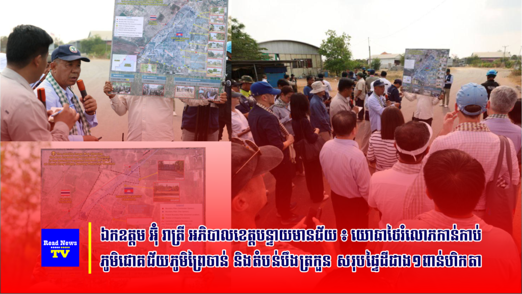 ឯកឧត្តម អ៊ុំ រាត្រី អភិបាលអភិបាលខេត្ត បន្ទាយមានជ័យ បានថ្លែងថា យោធាថៃរំលោភបំពានកាន់កាប់ភូមិជោគជ័យ ភូមិព្រៃចាន់ និងតំបន់បឹងត្រកួន លើផ្ទៃដីសរុប១.០២៦ហិកតា ក្រោយបទឈប់បាញ់ចូលជាធរមាន កាលពីថ្ងៃទី២៧ ខែធ្នូ ឆ្នាំ២០២៥។