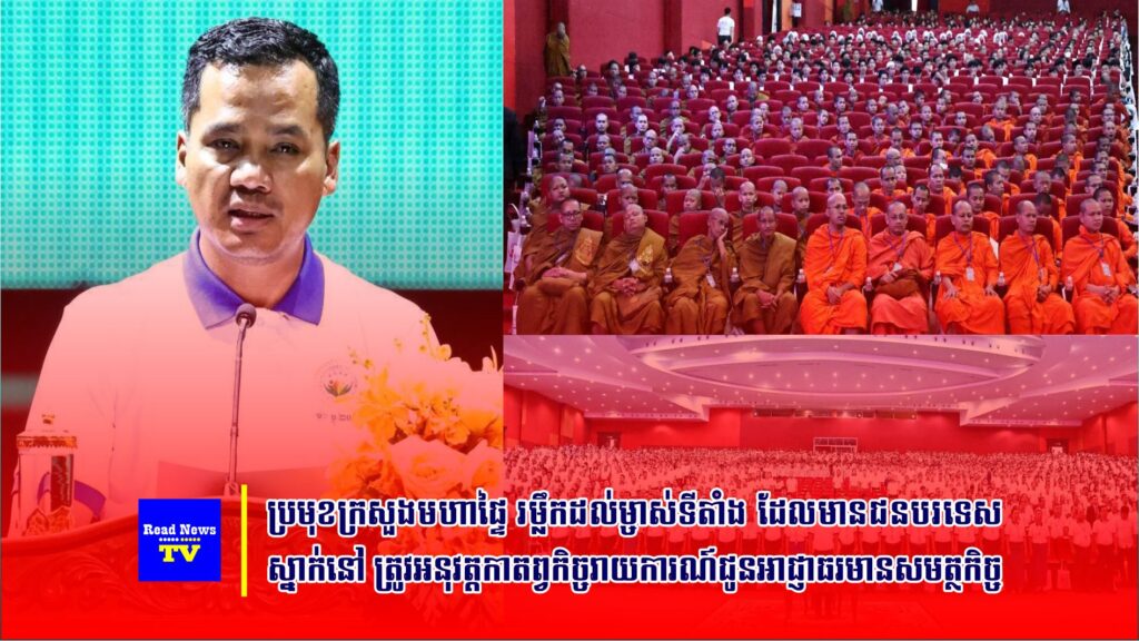 ឯកឧត្តមអភិសន្តិបណ្ឌិត ឧបនាយករដ្ឋមន្ត្រី ស សុខា រដ្ឋមន្ត្រីមហាផ្ទៃ បានដាស់តឿនជាមុនទៅកាន់ម្ចាស់ទីតាំងស្នាក់នៅគ្រប់ប្រភេទ មិនថាសណ្ឋាគារ ផ្ទះសំណាក់ ឬម្ចាស់អគារស្នាក់នៅនានា ដែលមានជនបរទេសស្នាក់នៅ ត្រូវតែអនុវត្តកាតព្វកិច្ចរាយការណ៍ជូនសមត្ថកិច្ច ខណៈសមត្ថកិច្ច នឹងអនុវត្តការពិន័យ ចាប់ពីដើមខែមីនា ឆ្នាំ២០២៦នេះតទៅ។