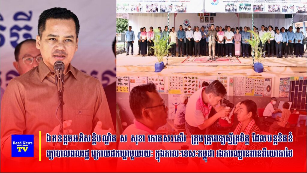 ឯកឧត្ដមអភិសន្តិបណ្ឌិត ស សុខា ឧបនាយករដ្ឋមន្ត្រី រដ្ឋមន្រ្តីក្រសួងមហាផ្ទៃ និងជាប្រធានសមាគមក្រុមគ្រូពេទ្យស្ម័គ្រចិត្ត ស សុខា បានកោតសរសើរអំពីការខិតខំប្រឹងប្រែងរបស់ក្រុមគ្រូពេទ្យស្ម័គ្រចិត្តដែលបន្តចុះព្យាបាលជំងឺជូនពលរដ្ឋ ក្រោយពីការដកឃ្លាមួយរយៈក្នុងកាលៈទេសៈកម្ពុជារងអំពើឈ្លានពានដែនអធិបតេយ្យពីយោធា និងរដ្ឋាភិបាលថៃ។ ការថ្លែងនេះ បានធ្វើឡើងក្នុងឱកាស ឯកឧត្តមអភិសន្តិបណ្ឌិត បានអញ្ជើញជាអធិបតី នៃពិធីពិនិត្យ និងព្យាបាលជំងឺ ដោយឥតគិតថ្លៃជូនប្រជាពលរដ្ឋ នៅស្រុកបាភ្នំ ខេត្តព្រៃវែង នាព្រឹកថ្ងៃទី២៨ ខែកុម្ភៈ ឆ្នាំ២០២៦នេះ។