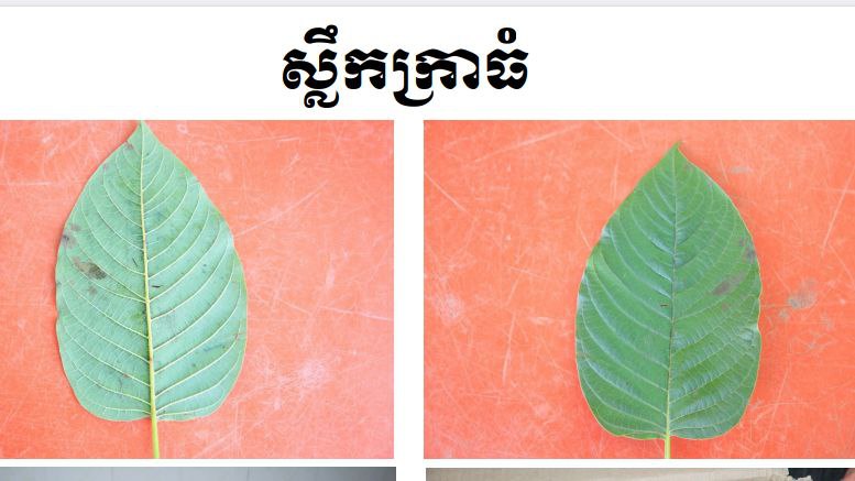 បើតាមលោក ណង វុទ្ធី នាយករដ្ឋបាលសាលាខេត្តបន្ទាយមានជ័យ អ្នកនាំពាក្យសាលាខេត្ត បានបង្ហាញនូវឯកសាររូបភាពស្លឹកកា្រធំស្រដៀងស្លឹកថ្កូវ និងមួយទៀតស្រដៀងស្លឹកខ្ទុំ គ្រាន់តែស្លឹកវាធំហើយមានទងវែង។ ដើមក្រាធំកម្រមាននៅក្នុងស្រុកយើង ភាគច្រើនគេទិញស្លឹកនេះពីប្រទេសថៃ។