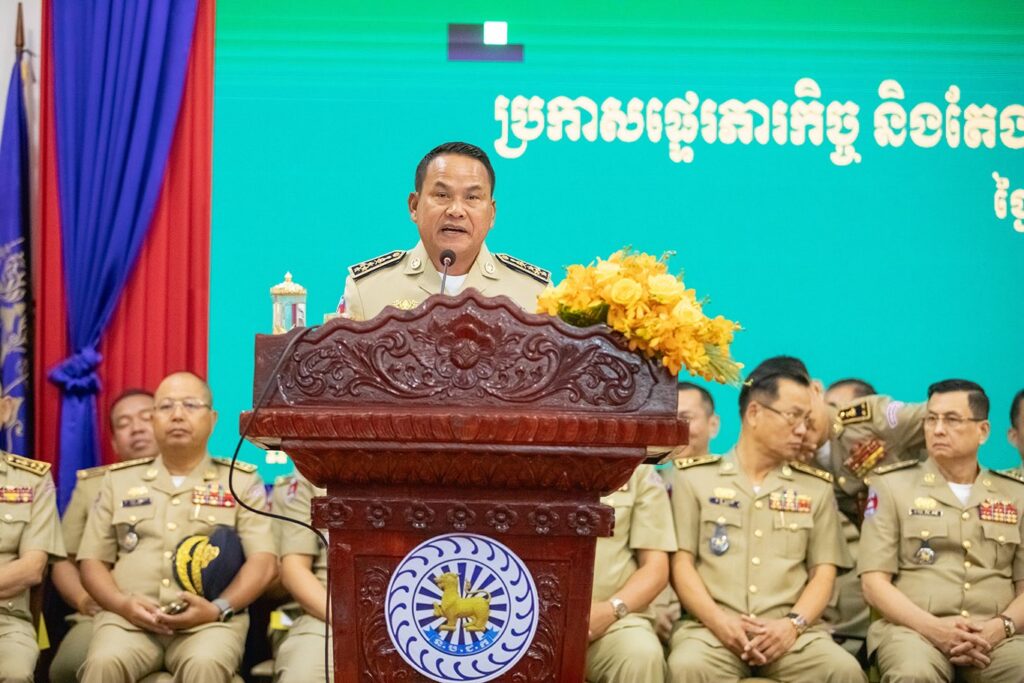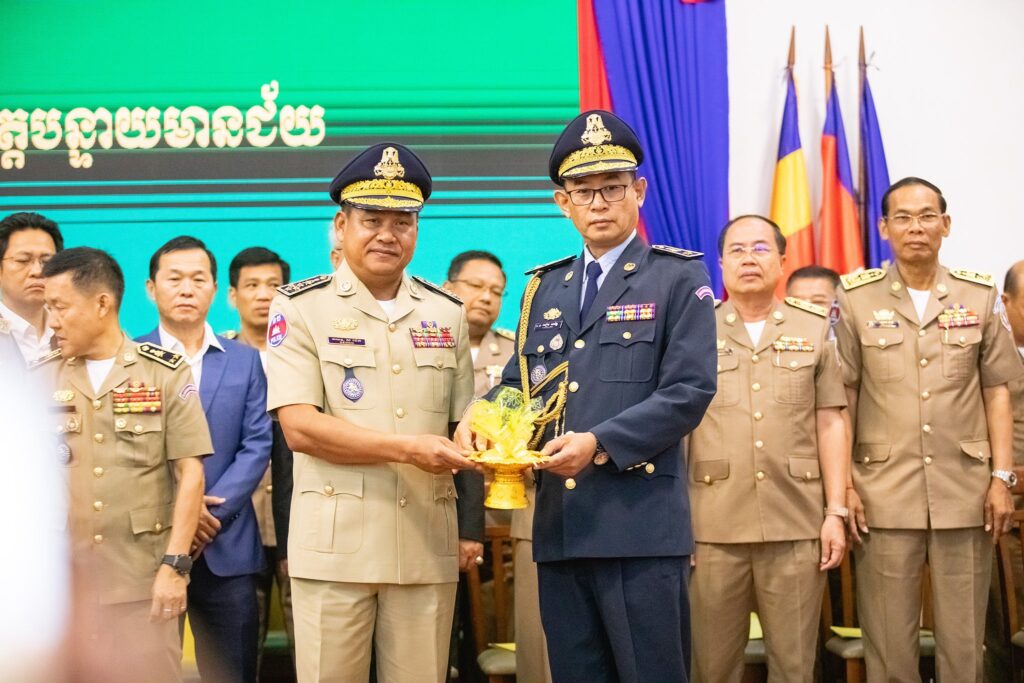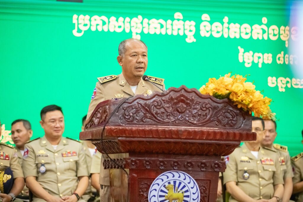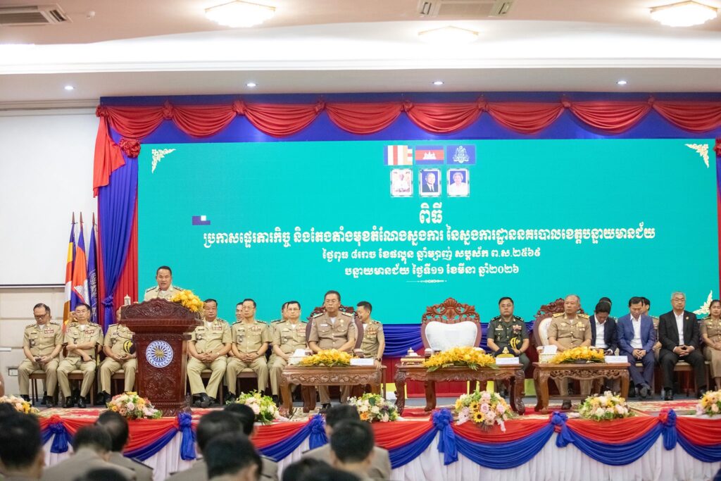 ការណែនាំរបស់ ឯកឧត្តម នាយឧត្តមសេនីយ៍ ស ថេត អគ្គស្នងការនគរបាលជាតិ ធ្វើឡើងនៅព្រឹកថ្ងៃទី១១ ខែមីនា ឆ្នាំ២០២៦នេះ ក្នុងឱកាសអញ្ជើញជាតំណាងដ៏ខ្ពង់ខ្ពស់ ឯកឧត្តមអភិសន្ដិបណ្ឌិត ស សុខា ឧបនាយករដ្ឋមន្ដ្រី រដ្ឋមន្ដ្រីក្រសួងមហាផ្ទៃ ក្នុងពិធីប្រកាសផ្ទេរភារកិច្ច និងតែងតាំងមុខតំណែងស្នងការ នៃស្នងការដ្ឋាននគរបាលខេត្តបន្ទាយមានជ័យ នៅសាលាខេត្តបន្ទាយមានជ័យ។