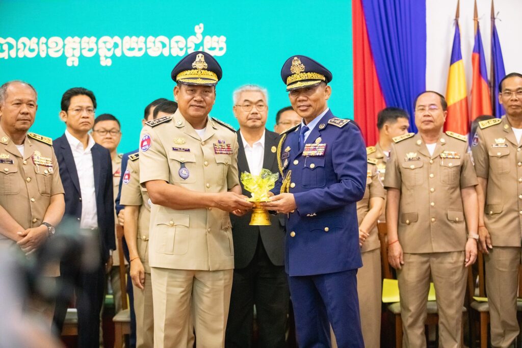 ឯកឧត្តម នាយឧត្តមសេនីយ៍ ស ថេត អគ្គស្នងការនគរបាលជាតិ បានណែនាំដល់ស្នងការថ្មី នៃស្នងការដ្ឋាននគរបាលខេត្តបន្ទាយមានជ័យ លោកឧត្តមសេនីយ៍ត្រី សឿម សារិទ្ធ ត្រូវរក្សាសាមគ្គីផ្ទៃក្នុងអង្គភាព ពង្រឹងរបៀបរបរនៃការធ្វើការងារ និងបង្ការ ទប់ស្កាត់បទល្មើសគ្រប់ប្រភេទពិសេស Online Scam និងការគ្រប់គ្រងជនបរទេស អនុវត្តតាមបទបញ្ជារបស់រាជរដ្ឋាភិបាល ដើម្បីធានាសន្ដិសុខ សណ្ដាប់ធ្នាប់ និងសុវត្ថិភាពជូនប្រជាពលរដ្ឋក្នុងខេត្តបន្ទាយមានជ័យឲ្យបានល្អប្រសើរ។