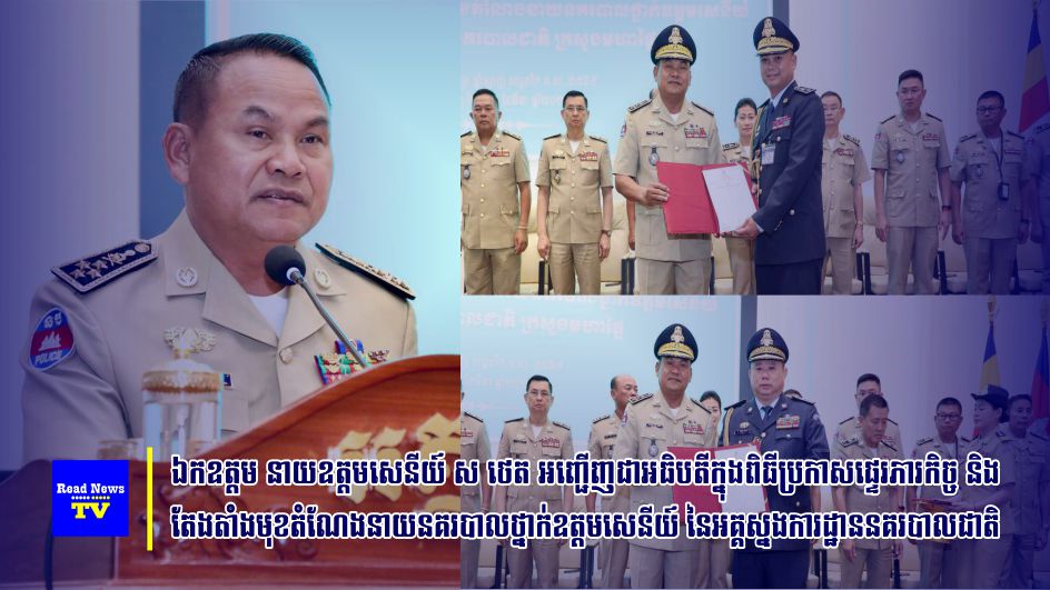 នៅថ្ងៃទី២០ ខែមីនា ឆ្នាំ២០២៦ ឯកឧត្តម នាយឧត្តមសេនីយ៍ ស ថេត អគ្គស្នងការនគរបាលជាតិ តំណាងដ៏ខ្ពង់ខ្ពស់ឯកឧត្តមអភិសន្តិបណ្ឌិត ស សុខា ឧបនាយករដ្ឋមន្រ្តី រដ្ឋមន្រ្តីក្រសួងមហាផ្ទៃ បានអញ្ជើញជាអធិបតីក្នុងពិធីប្រកាសផ្ទេរភារកិច្ច និងតែងតាំងមុខតំណែងនាយនគរបាលថ្នាក់ឧត្តមសេនីយ៍ នៃអគ្គស្នងការដ្ឋាននគរបាលជាតិ។ នាយនគរបាលថ្នាក់ឧត្តមសេនីយ៍ ដែលត្រូវប្រកាសចូលកាន់តំណែងនោះ គឺឯកឧត្តម ឧត្តមសេនីយ៍ឯក សៀង សេន ជាអគ្គស្នងការរងនគរបាលជាតិ និងលោកឧត្តមសេនីយ៍ត្រី សេន សុភាព ជាប្រធាននាយកដ្ឋានប្រឆាំងបទល្មើសល្បែងពាណិជ្ជកម្ម។