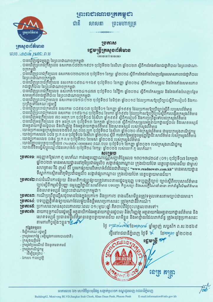 ឯកសារឯកភាពនិងអនុញ្ញាតិ ពីប្រតិភូរាជរដ្ឋាភិបាល អគ្គនាយកដ្ឋានព័ត៌មាននិងសោតទស្សន៍